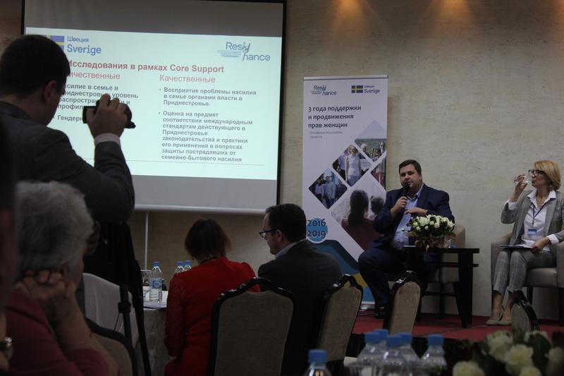 Некоторыми результатами одного из них («Насилие в семье в Приднестровье: уровень распространённости и профиль») Александр Гончар, руководитель программы социологических и маркетинговых исследований Центра «Резонанс», поделился на итоговом мероприятии. Так, согласно результатам исследования, проблему насилия в семье «актуальной» или «очень актуальной» считают 64% респондентов, в то время как 17% женщин хотя бы раз подвергались физическому насилию со стороны мужчин в течение жизни, а 60% респондентов знают семьи из своего окружения, где было физическое насилие одного из супругов. Кроме этого, значительное большинство опрошенных скорее соглашается с утверждением «жертвами насилия в семье являются, как правило, женщины и дети», чем с «жертвами насилия в семье могут быть как женщины, так и мужчины». При этом о случаях, когда в семье знакомых, друзей, родственников супруга била своего мужа знает каждый 5-й. Большинство респондентов указывает, что в их семье женщина больше стирает/гладит вещи, наводит в доме порядок, готовит еду и моет посуду, а мужчины, скорее, занимаются ремонтом домашней утвари. В финансовой сфере тоже был зафиксирован ощутимый перекос: почти половина мужчин указали, что они зарабатывают больше супруги, так же, как и супруга, зарабатывает каждый 5-й. Ответ «меньше» выбрали всего 5.4% мужчин. Среди женщин только 6% зарабатывают больше своего супруга, каждая 3-я примерно столько же, а 30% — меньше партнера. Что касается финансовых запросов, то у мужчин они немного выше. Средняя сумма оклада для мужчины, при которой он захотел бы поменять работу / устроиться на работу равна 7162 рублям, для женщины — 6331 рубль. Как-то связаны показатели реальных доходов и желаемой для смены/устройства на работу суммы у мужчин и женщин? Может ли это говорить о «занижении» своих желаний у женщин в связи с ролью и возможностями в обществе или о «завышении» своих желаний у мужчин по тем же причинам?