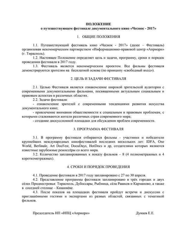 Положение о фест denis | 25.04.2017 ← Return to Фестиваль «Чеснок–2017» и Госслужба по культуре ПМР ‹ ›